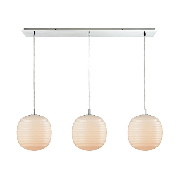 Titan lighting 3 light triangle pan polished chrome with opal white beehive glass pendant.